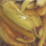 Green tomatoes, garlic, hot pepper, mustard, fennel, vinegar, sugar, salt |