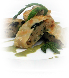 Hops Asparagus Strudel with Baby Spinach Sauce