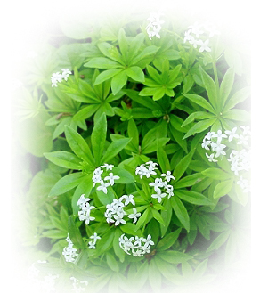 Leaves are deep green whorls of six to eight around the square stem. Small white, funnel shape flowers appear in clusters in May. Flowers are sweet smelling, with a grassy, vanilla flavor and nutty undertone, foliage has no scent when freshly picked; but soon the sweet aroma of newly mown hay is released and the smell intensifies as the plant dries. Sweet Woodruff can grow in almost any type of soil but especially well-drained, rich soil, prefers shade but will adapt to partial shade. Can grow from seed but slow to germinate, it is easier to divide in spring or autumn. Once established it will self seed freely, spreads also by stolons (underground runners). May be invasive! In the Kitchen |